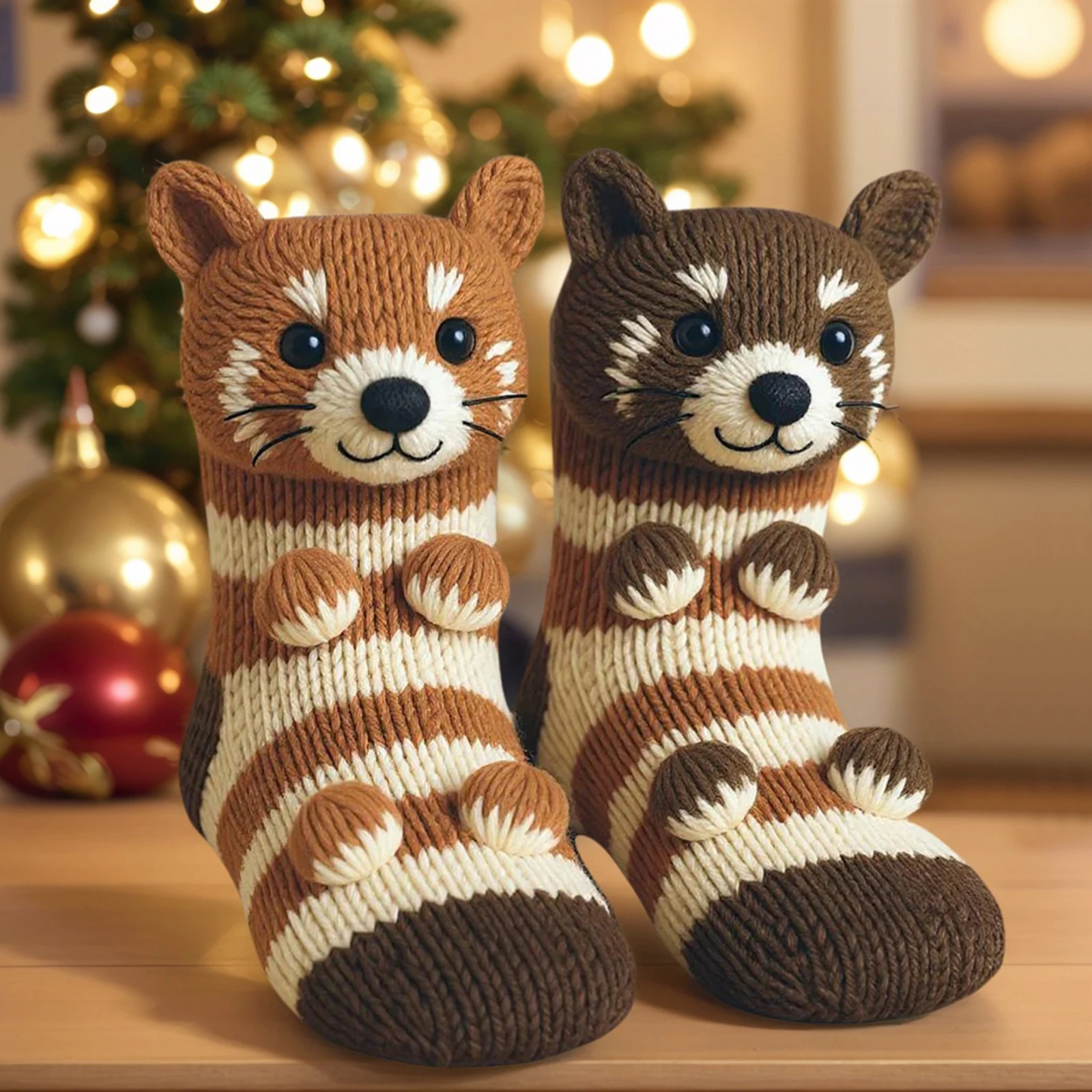 1 Pair Knit Animal Socks Funny Cartoon Animal Cotton Socks Fashion Sleeping Socks for Christmas Holiday Home Gifts